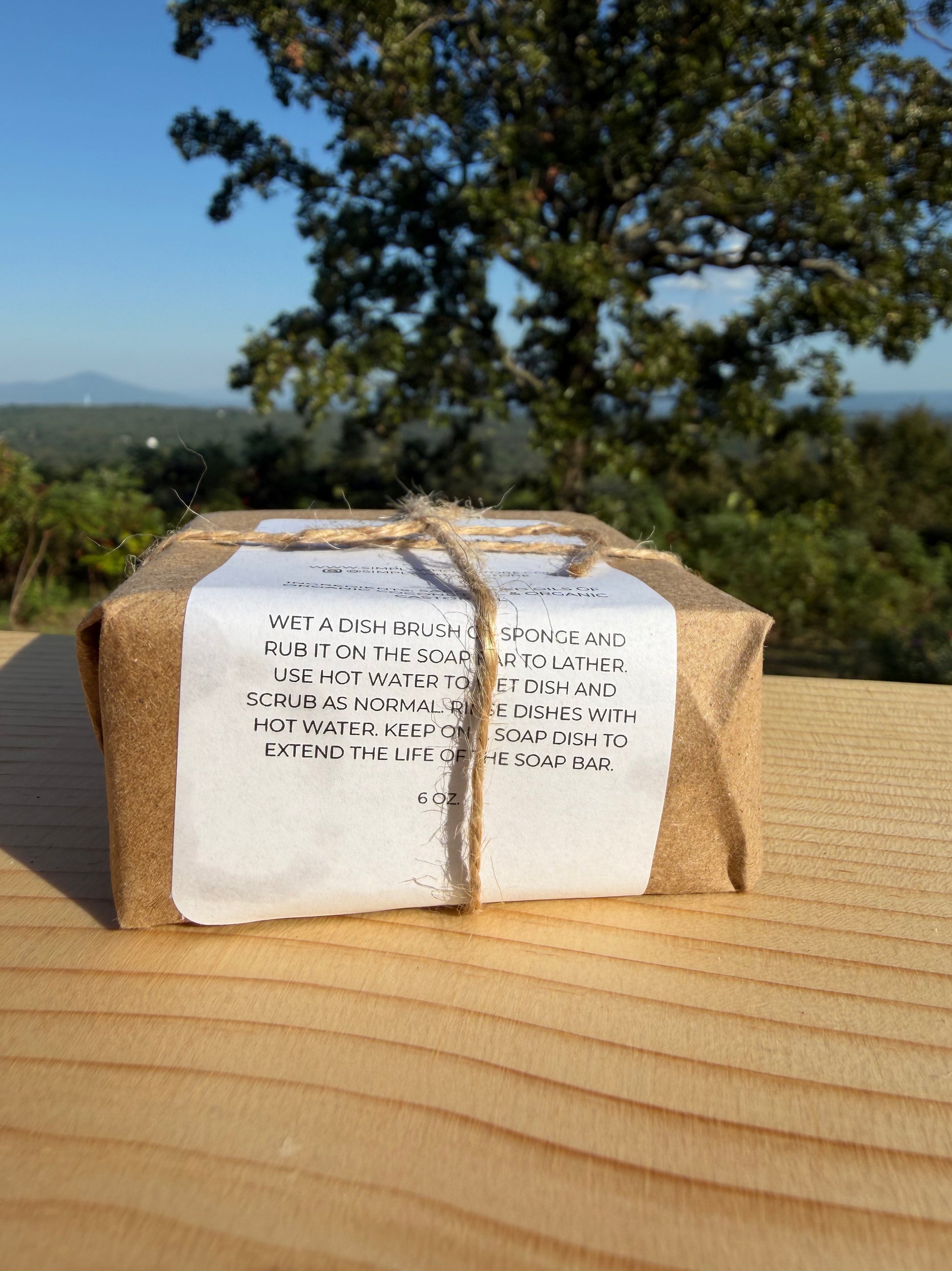 Wet a dish brush or sponge and rub on soap bar to lather. Best results when washing/rinsing with hot water.
