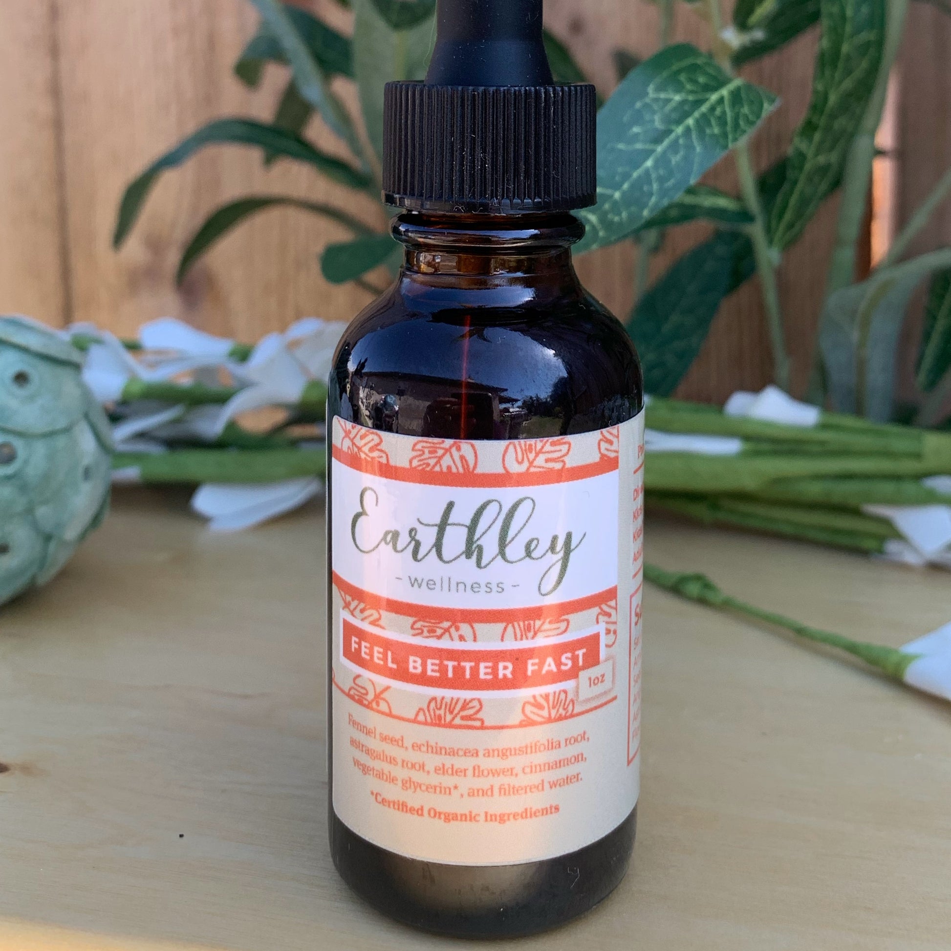 Feel Better Fast is an herbal tincture that helps to relieve coughs, sniffles and upset stomach quickly! Rather than covering up your symptoms like OTC meds, this tincture works with your body to help you heal. Helps to support your immune system and reduce inflammation.