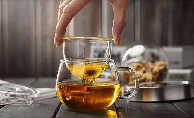 Glass Mug w/ Strainer & Lid (Tea Cup)